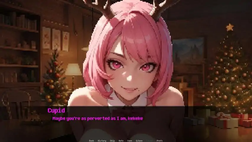 On the North Pole, there exists a secret civilization run by Santa who's purpose is to spread the Christmas spirit. Your job is to produce presents for Christmas Day, but you've fallen behind your quota, and now Santa has ordered one of her helpers, Cupid, to punish you. However, the "punishment" that Cupid has in mind for you is far from painfulFull nudity