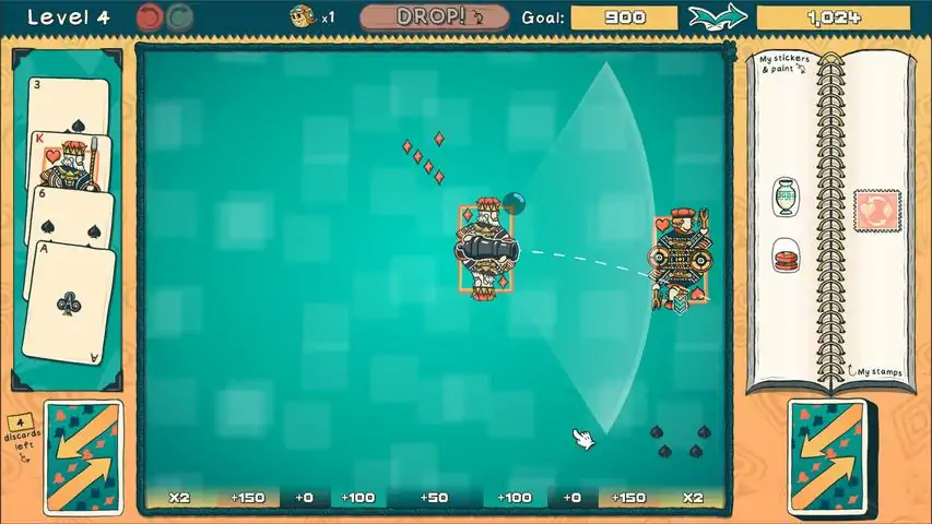 Ballisticards is a physics-based, point-chasing, deck-building roguelike. Drop balls onto your cards to rack up points. Use face cards to launch your balls to keep the action going. Power-up your deck with stickers, paint, and stamps to trigger wild chain reactions, discover powerful synergies, and score big!In each stage, lay out your cards and drop your ball, earning as many points as you can. Reach the target number of points to progress to the next stage, or fail and start over (no big deal!).Wield a 52-card deck. Unlike other deck-builders, you do not add or remove cards from this deck. Instead, you modify the cards using paint and manually-placed stickers, allowing the creation of essentially infinite unique cards. Build a collection of stamps with passive effects, to unlock powerful