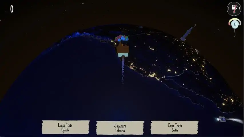 Travel the world, study, and test your geography skills by flying around in your house held afloat by balloons!Test your skills by exploring the world with two different modes: normal and aviation. In normal mode, you fly with a top down view, and can see almost half the earth at any given time. In aviation mode, you can test your skills as if your were a pilot, seeing only a narrow view of the earth and seeing countries from far more obscure