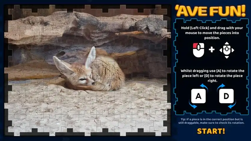A different kind of Jigsaw!The meta for jigsaws has been broken. No longer can you start with the edges and work your way in! You will need a new approach!Casual? Challenging? Approachable!By limiting the puzzle size to 63 pieces you get an experience that is not overwhelming while still offering a challenging jigsaw to engage your mind. Play, Learn & Enjoy!Complete puzzles to learn about the subject. For example: Complete a puzzle with elephant and then learn about elephants!Earn Achievements!Achieve 3 star ratings by completing jigsaws quickly and unlock steam achievements to show everyone your talents!