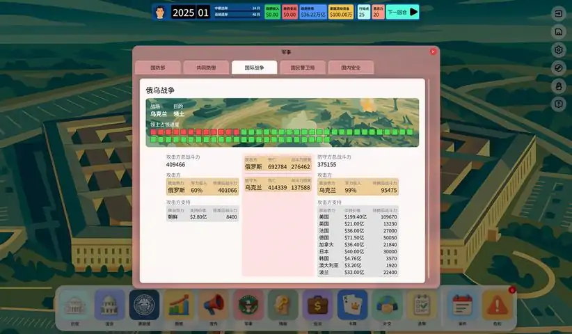 《民选帝国》正式改名为《投票帝国》成为总统。改变国家——或让国家属于你。你是新上任的美国总统。2025 年的美国,正在剧烈撕裂。价值观分化前所未有,不同群体彼此仇视; 疫情后的通胀与高房价让年轻人再无未来; 盟友贪婪、敌人环伺,民众的信任在一点点流失。他们选你,是希望你带领国家走出泥潭。 但你,会如何回应这份期望?八年,足够重塑美国吗?美国宪法只允许你任职八年。 你能在这有限的时间内重振国家经济、安抚民意、压制对手吗? 还是会走上一条更加激进的道路:修改法律、延长任期,以“救国”为名?操控媒体与军方,将美国化为你个人的王国?甚至……放飞自我,不再掩饰你对权力的渴望? 真实模拟政治博弈欢迎来到白宫。我将为您简要介绍这台机器的运转逻辑:▶ 对内权力操作:议员:虽由选民选出,却更听命于金钱与恐吓。收买或威胁,任君选择。资本家:他们可以是你的赞助者,也可以是你的傀儡,前提是你够聪明。军方将领:挑选忠诚的将军,用权力与金钱驯服他们——法律再硬,也硬不过子弹。联邦储备主席:自称独立,却在降息与货币宽松中,能否无视你的意志?宣传系统:让选民相信你、爱你、为你鼓掌;若不行,就让他们感到害怕。▶ 对外经济与外交:全球秩序是可交易的:通过外交手段或军事威胁,强迫盟友吐出经济利益,反哺国内民意。合纵连横:引导国际对抗、操纵外部冲突,在混乱中坐收渔利。背弃道义:将“国家利益”当作你私人金库的门牌名。只要包装得体,没人会在乎。 系统特色高度拟真模拟系统:内建数亿人口数据,基于现代政治经济理论,重构现实动态。10+大系统协同:国会立法、舆论操控、联储货币政策、外交博弈、军队部署、特务要挟……环环相扣、步步惊心。舆论引导机制:通过电视、网络、课本、考试等多种方式改变民众信仰与立场。完整的权力链条:经济 → 民意 → 国会 → 法律 → 军方 → 情报 → 舆论,全在你手中。卡牌谈判系统:与对手进行黑箱交易,打出威胁、收买、承诺等卡牌,争夺议会与政坛话语权。危机连锁反应:每一次抉择都可能引发罢工、政变、媒体揭露、外交断裂……没有轻松的路。❓ 你是总统,也是棋手,甚至是操盘手。你会成为人民的英雄,还是历史的独裁者? 你会交出权力,还是把国旗改成你的头像?你,真的能抵挡权力的诱惑吗?选择,尽在你手。