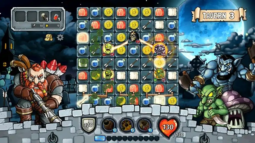我们将三消解谜和战棋类游戏完美融合,给您带来了这款崭新体验的策略三消RPG!在以往的三消RPG中,角色和三消棋盘通常是分别独立的。而在《酒馆勇士:盛宴狂欢》中,不但会有大量的敌人会从棋盘上方涌入,而且这些敌人各自拥有不同的行为模式以及独特的技能。您则需要扮演一名守护酒馆的英雄,阅读并预测敌人下一步的行动后,运用强大的魔法和道具、以及随机应变的战斗策略来战胜它们。60+ 独特杂兵在这款游戏中,我们为您精心准备了60多种行为模式、机动性、技能都各不相同的杂兵敌人。其中不但有一般的杂兵,还有各种强力的精英杂兵。通过各种出其不意的敌人组合、配合该游戏独特的战斗系统,给您带来一场场充满挑战且绝不冷场的战斗。10+ 史诗Boss战除了杂兵,经典的Boss战当然是必不可少的。Boss的体型、能力和行为都和杂兵大相径庭,能给玩家带来极大的麻烦!要击败它们,必须牢记它们的行为规律、躲开附近杂兵的骚扰、并且谨慎地选择自己每一步的操作。当然,一点点的运气也是必不可少的!选择你自己的战斗风格3名外形独特且能力各异的英雄角色,配合以40种以上的主动道具和装备,试着搭配出你最喜爱的战斗风格来击倒敌人,完成伟业吧!(新角色正在努力开发中哟!)剧情模式在剧情模式中,玩家扮演了一名迪奥尼亚大陆的英雄。他遇到了一名立志把连锁酒馆开遍大陆各地的酒店老板。他被这名酒店老板的雄心壮志所感动,决定帮助他保护酒馆不受邪恶生物的攻击和破坏。剧情模式中有两个难度可供选择。不同的难度通关后都会所奖励,以帮助玩家在生存模式中获得更好的成绩!生存模式(正在开发中)如果您是一名三消RPG或者策略游戏的高手,那这个模式无疑是一个挑战自我的好地方。在这个模式里,玩家不但要面对完全随机组合的敌人,而且商店里可供购买的装备也是随机出现的。可以说是一个充满惊喜且耐玩度非常高的模式。如果您还在犹豫这个游戏适不适合您,可以先试试看免费的试玩版哟!