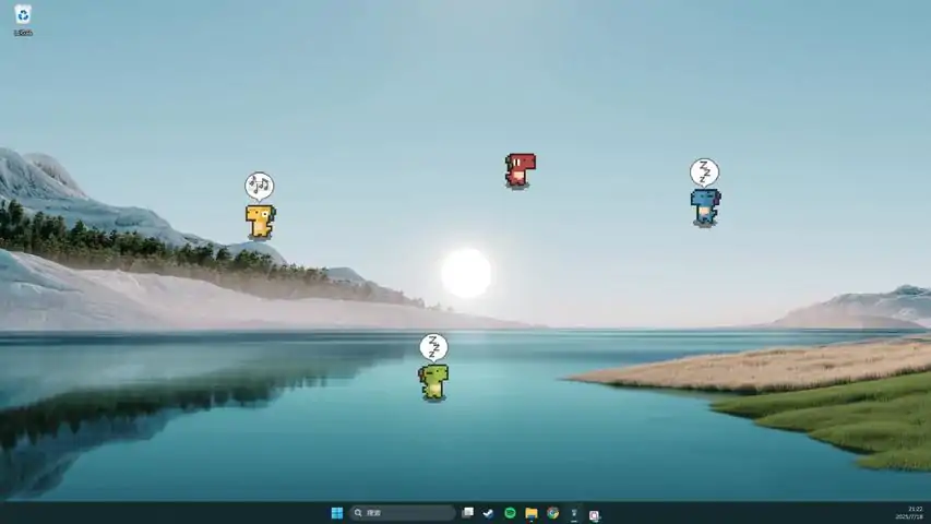 Some naughty pixel dinos run around on your computer desktop, being some good accompany while you're working, studying or relaxing. Feed them or play with them, it's on your mark. Don't worry, they won't bite. Enjoy your dino.