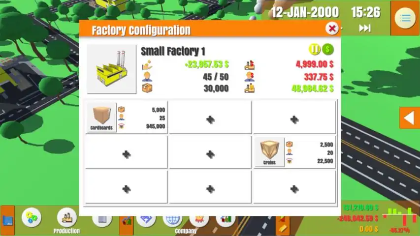 Want to Become a Businessman? Well it's your chance to become One. In this New Game by S.A. DigiWorks, You can become a Businessman and make a Company that makes Products. There are a lot of Products that are ready for you to be Produced. You Can research more Products to Expand your Production Line and research Factories to make more Products at Once. Compete with Other Companies and Race to the Top Spot in the Competition. Can you become the Number One Company in the Competition? Update 1.3.0 - Quest!