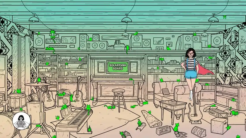 欢迎来到Solnest,一款温馨的隐藏物体游戏,您将在其中探索充满太阳能朋克风格的美丽房间,并发现超过500只可爱的小猫藏身于明处!特色:在细节丰富的场景中寻找500多只隐藏的猫咪。探索11个温馨的房间,每个房间都充满太阳能朋克风格的个性。在游戏中学习现实生活中的环保理念。轻松的音乐和宁静的氛围,带来专注的游戏体验。仅限平和的探索。