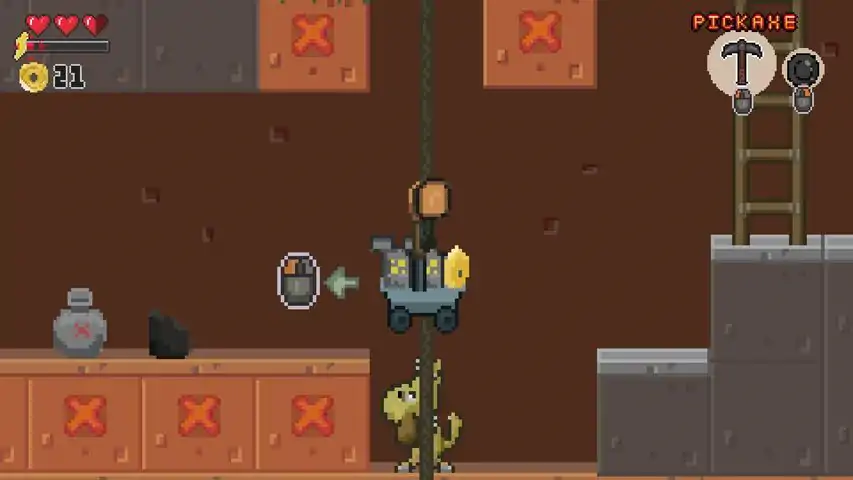 Fat Cat wants his rent and the only way to get it is deep in the mines. In this 2D sidescrolling strategy/resource management game, excavate and traverse your underground mine shafts to retrieve gold! Go into the mines and extract as much gold as you can. Setup your operation and reinvest your earnings into better gear and equipment to mine more gold and win the game! This line of work not only separates the gold from the dirt, but the pups from the dogs. With danger lurking in these ancient grounds, hungry Dinos awaken, searching for prey and loot. The wise miner doesn’t fear the Dino but sees it’s flesh and bones as a potential fuel source for their operations. Gold mining is a treasure hunt, so open your miner’s map, test some dirt, and find that stash of gold!YOUR TASKPan Dirt Mine GoldSmelt CoinsMake RentDogs like to move it. You name it they'll carry it for