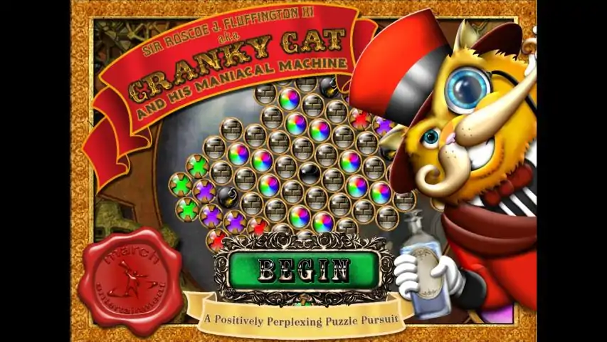 Enjoy hours of bubble-popping madness with this absurdly fun and addictive color-matching puzzle game! Described as a 360-degree Bust-a-Move with a steampunk motif, Cranky Cat allows for hours of bubble-popping madness with numerous modes of gameplay. 250 unique levels of bubbly fun and frolic! Try your hand at Story, Puzzle and three types of Infinite modes! Show off milestones and achievements aplenty to your chums! Simple to learn, difficult to master and impossible to put down! Also available on Android Market and Apple iTunes! Featuring fun carnivalesque music, authentic old-timey lingo and painstaking artwork inspired by Victorian-era patent illustrations and snake oil posters, Cranky Cat adds a unique steampunk spin to a timeless game.