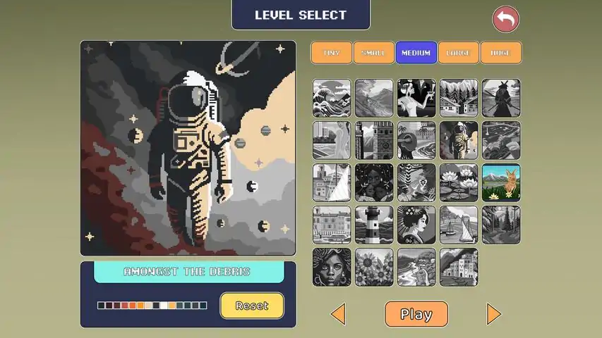 特色列表95个新关卡:大量新鲜美丽的图片供你填色。 随时随地开始:从任何一个吸引你的关卡开始。 自定义颜色:多种色调任你挑选。 轻松音乐:在填色时享受舒缓的背景音乐。 放大和缩小:完美处理细微的细节。关于游戏介绍全新像素填色游戏《像素绘画3》。这是像素绘画系列的最新作品,旨在让玩家放松身心,享受轻松的像素艺术。有95张全新图片供你填色,让你尽情挥洒创意!想象一下,手捧一杯你最喜欢的茶或咖啡,戴上舒适的耳机,沉浸在色彩的世界中。你不需要遵循任何规则——只需选择一幅你喜欢的图片,选取你喜爱的颜色,开始填充那些小小的方块。重要的是,让每一幅作品成为你独一无二的创作。《像素绘画3》非常适合放松、解压和表达你的创造力。它就像是在屏幕上的一个温馨小艺术工作室。