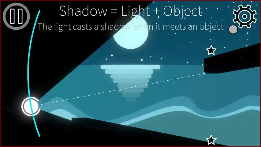 Shadow Play is a game with simple rule: the ball will roll over the shadows. The ball moves according to the general laws of physics, and can be stopped at any moment if you have remaining "Pause count"s. The goal of every stage is collecting every stars in the