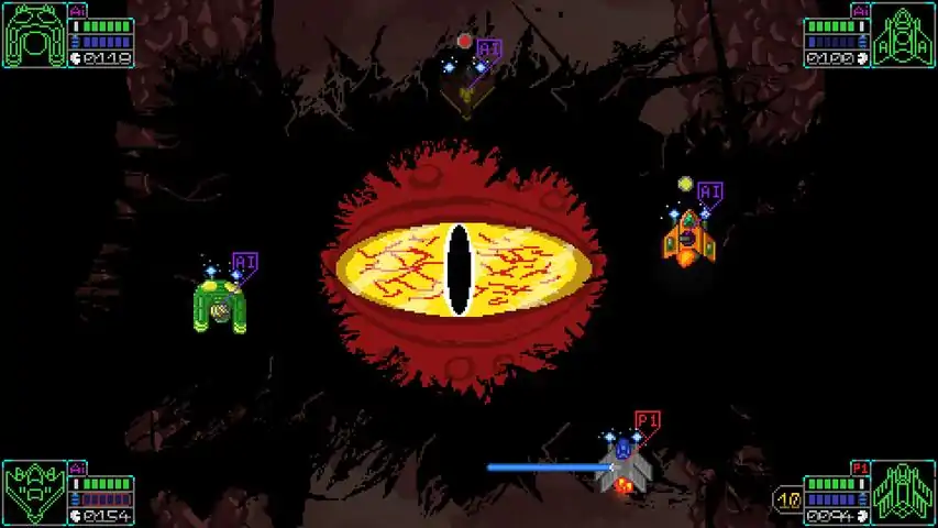 GAME FEATURES:- Story mode with unlimited continues & checkpoints!- AI team mates and/or local co-op.- Unlockable 'random mode' (chaos turned up to 11 here).- Perma-death (in random mode) - no continues allowed!- A boss rush mode (with a Crystal comet twist).- Unlockable spaceships / characters.- Unlockable power-ups (unlock more for your 'run' when killing bosses).- Multiple routes through story mode to reach the end.- Multiple