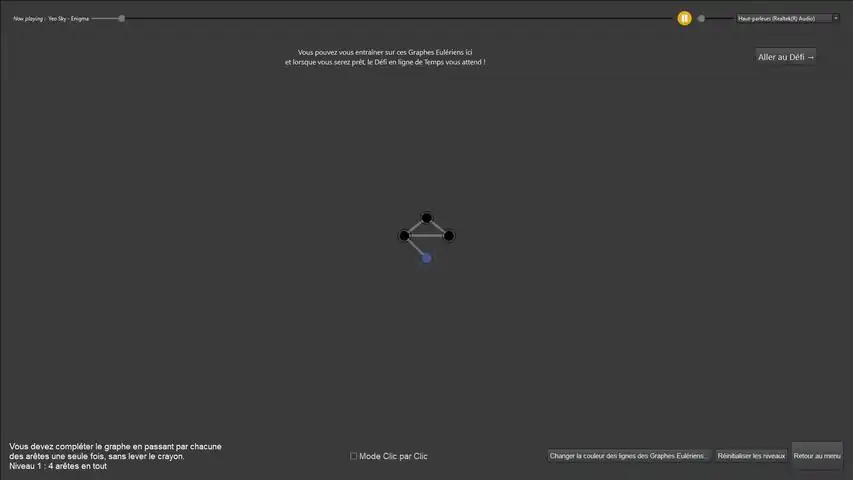 These are series of enigmas games. Enjoy thinking about puzzles. One series of puzzle is included for the moment : you will have the pleasure to try to complete some Eulerian Graphs (by passing through each of the edges only once, without lifting pencil). After some practice, you can be confronted to the online time challenge, which permit to compare your records with other players in acheiving all the 8 graphs quickly. More types of enigmas are coming soon...