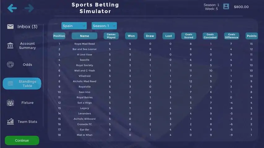 As a football fan, you always dream of having the life that many of your idols have thanks to their large annual salaries. Houses, luxuries, parties… There are many things that we all wish we could live and have coming from a small village with few resources. After you stop imagining this dream life and fall into reality, you make the biggest decision of your life when you remember that your aunt and her son live in a big city full of people. A city where you will find more possibilities to reach that dream life you have always wanted. You decide to enroll and start studying, but as time goes by, you find yourself in a different reality. Studying takes a lot of time and will only lengthen the possibility of achieving your dream without the certainty that you will be able to achieve it. As you think about this, you remember that your cousin also has the same mindset that you have, he wants to make money quickly! You don't hesitate to drop out of school and with $1000 in your pocket, you decide to join your cousin in the world of betting. In Sports Betting Simulator, you will have to accomplish certain small missions while you are getting started in this vast world of sports betting. By completing the tasks you will be able to earn income which will increase as you complete more missions, allowing you to rent an apartment, buy a car, get married, start a company, and so on. With that amount of money in your pocket, you can bet on different football leagues, but it won't be as easy as it seems. You have to study the teams and see who has the most possession, who performs better at home, which teams have the best squad and more. All these things will be decisive when it comes to winning big money or losing it all! Sports Betting Simulator features: • Become the best gambler: You will have to place bets in order to complete objectives and move farther in your journey to achieve the life you have always desired. • Many leagues available to choose from: There are ten different leagues to select from, each with a plethora of matches to wager on. Italy, England, France, Germany, Netherlands, Portugal, Russia, Spain, Turkey, or Ukraine, choose your favorite league or a mix of several leagues when it comes time to place your bet. • Watch out, you can lose it all!: Use your money wisely to avoid losing it all at once. Not all bets will be winners, so don't be surprised if you lose everything in an eye-opening and eye-closing maneuver. • You have to study: Yes, you drop out of college, but you have to keep studying. Although some luck is involved in the betting, the data and statistics speak for themselves. Whose club is in the best position, which team has scored the most goals this season, how many games they have lost, all of these, and many other factors should be considered before risking your money. • Wait, that team name sounds familiar!: With 10 leagues available, there are many teams to choose from, but you won't come across any familiar names, or maybe you will? You might find Royal Mad Reed and Bar and Sea Loonar in the Spanish league, maybe bet on one of the two MoonCastles in the English league or perhaps bet on an Italian League classic between Me Land and Intra. These and many more funny names can be found on Sports Betting Simulator. In case you lose some of your money, don't worry! The bank will be there to give you a loan, which you will have to use wisely to multiply it and not go bankrupt because all your dreams will be done. Analyze the different football leagues, think well before making any decision, complete your missions and, in a short time, you will be able to get the life you long for in Sports Betting Simulator!