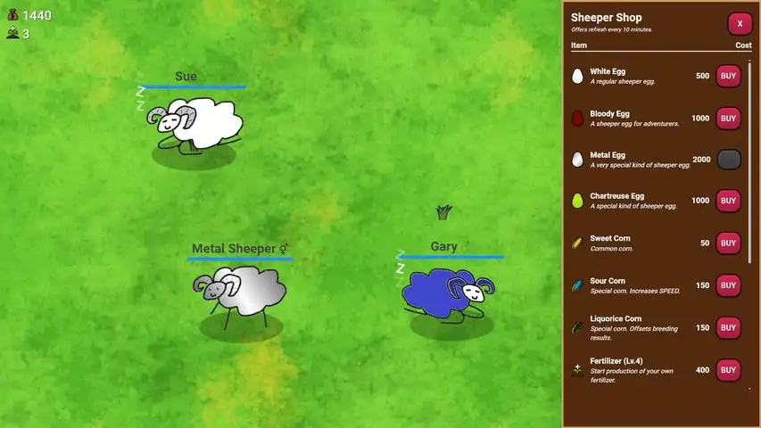 Dive into the delightful world of Sheepers, a free idle pet simulation game where you take on the charming challenge of raising and nurturing a vibrant flock of sheepers (similar to the creatures in your world known as simply, sheep). Feed and train your sheepers, then send them off to competitions to earn gold, allowing you to expand your farm and acquire even more colorful sheepers. Experiment with breeding to discover unique combinations, all while aiming to collect a sheep of each available color. The ultimate goal? Unveil the secret rainbow sheeper and achieve the pinnacle of your sheeper-raising journey. Sheepers is a blend of strategy, care, and discovery that will keep you engaged as you grow your own