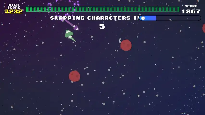 Antithesis is a top-down action arcade game where you control one spaceship with each hand: one with WASD and one with the arrow keys (alternatively, one with each joystick of a controller). There are four levels to beat by getting a certain score, and one endless level in which you have to try and get the highest possible score, and who knows, maybe even get a spot in the leaderboards?Unique Selling Points High intensity, frantic gameplay that rewards skillful players. Unique challenge of hand independence, which will test you in ways you're not familiar