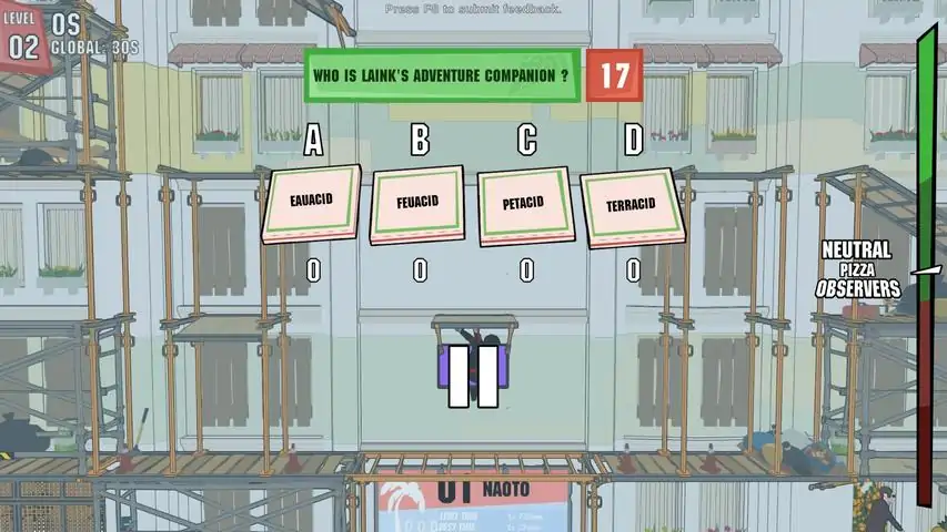 Pizzaïolo-Ninja is a 'Die & Retry' platformer with :30+ levels where everything can make you fall—slippery platforms, electrified floors, pineapple cannons, and even pigeons (yes, it’s weird).A global speedrun leaderboard for those who love being at the top of the ladder!Every failure gets live commentary from the game’s creator—because suffering alone is just sad.A Streamer Mode to play with your Twitch chat, featuring an interactive quiz that grants buffs (or debuffs) to spice up your