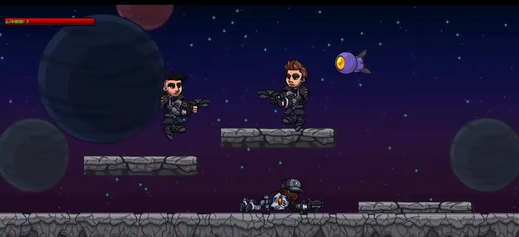 The Onyx Battalion--a space terrorist organization led by the disgraced General known as Jericho--has hatched a plot to seize the natural resources from the Stellar System’s largest planets. Jericho, his team of mercenaries, and their drones must be stopped…soon. That’s where we come in. We are Stellar RAID (Rapid Aerospace Infiltration Detachment). RAID is a small team tasked to take down space terrorists quickly and efficiently. Take control of one of RAIDs most elite space marines as you clear various planets of Jericho's forces with a variety of weapon upgrades including a trusty support drone! Navigate through treacherous enemy terrain on foot, expertly pilot the REACH aircraft through an enemy airbase, and engage in intense boss battles in this space based side scrolling thrill ride. Features Intense Boss battles An amazing retro/metal infused soundtrack Old school arcade run-and-gun gameplay Access to an arsenal of weapons, plasma guns, plasma bombs, and a handy support drone will aid you in your fight against space terrorists