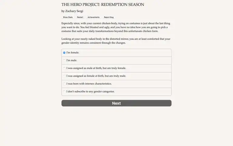 America's #1 reality show for heroes is back for another season! Harness your superpowers to steal the spotlight, win votes, and save your sister!"The Hero Project: Redemption Season" is the first installment in a new series of interactive novels by Zachary Sergi set in the "Heroes Rise" universe. Your choices control the story. It's entirely text-based--129,000 words, without graphics or sound effects--and fueled by the vast, unstoppable power of your