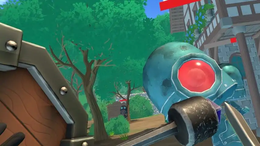 「Village Guardians」 is a VR action game in which you switch weapons depending on the situation and your preference. Robots keep coming out from the base, so you have to destroy them while attacking and dodging them. You are free to destroy objects in the stage to advance, or use them to stop them. Choose your favorite weapon from pistol, machine gun, sword, and hammer to attack the attacking robots. You can block the robot's attacks with the shield in your left hand.