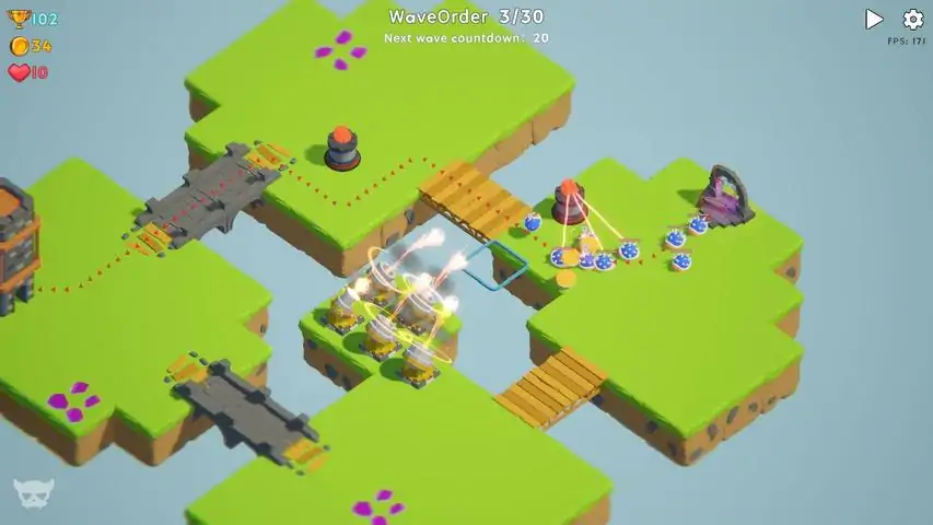 《云端城堡》是一款策略塔防游戏,在网格地图中,通过放置和升级打造你的防御路线,抵御一波又一波的怪物。 地图——风格化的地块构建出来的战斗场景,通过放置炮塔来规划怪物行进路线 矿石——每个地图中有少量特殊矿石地块,通过放置矿洞进行采集 天赋——每次战斗都会积累经验提升等级,每级会获得天赋点,天赋点可以用来解锁更多炮塔和额外加成 强化——利用收集到的矿石强化你的炮塔,可以让你在战斗中获得更高的上限