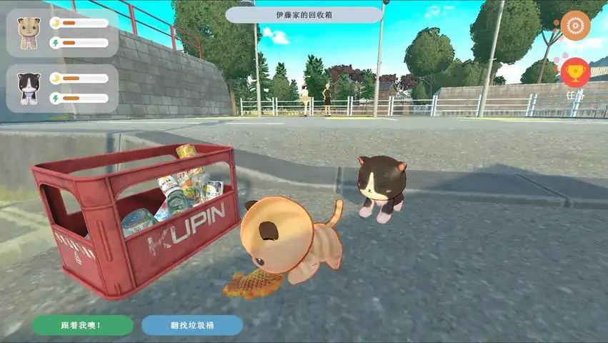 在一个美丽的小镇上,扮演并体验猫咪的生活。[猫的生活]你需要翻找垃圾桶和回收箱,发现各种食物。记住那些会有食物的地点,在饥饿来临的时候去碰碰运气。你还要随时关注天气,下雨会使小猫的体力迅速流失,及时寻找可以避雨的屋檐,保持小猫的身体干爽。[猫的故事]饭团屋的饭团女士偶尔会给流浪小猫提供任务,帮助她完成,会触发全新的情节。还有小镇上生活着的其他小猫,彼此之间也会发生有趣的事情。偶尔与路人互动一下,或者找到隐藏的地点,也会发生一些令人感动的故事。[小游戏与收集]有空的时候可以挑战钓鱼小游戏或者是玩球的小游戏,取胜就能获得不错的奖励。还有许多猫咪硬币不时出现在各个地方,收集它们,然后前往自动贩卖机就可以抽取各种神奇的能力或者是额外的食物。在计划一次活动之前,不妨先通过自动贩卖机和猫咪硬币,增强一下自己的能力或者让一整天都不会下雨。[猫的交通]主干道两侧都有猫咪专用的高速通道,在高速通道上奔跑,速度会大幅提升,能够节省不少移动时间。通过运动,也能够改善猫咪的速度。要留意经过小镇的卡车,如果撞上去,可是会直接死亡的。[猫的伙伴]你将获得一位可怜的小伙伴,在游戏中,你不仅要关注自己的状态,还要负责照顾它,通过温暖的对话鼓励它活下去,帮助它找到走失的家人。你曾经不知道它们在想什么,为什么要那样做,现在你将有机会了解。成为一只真正的猫咪,体验生存的艰辛,也找到心中对生活的热爱。