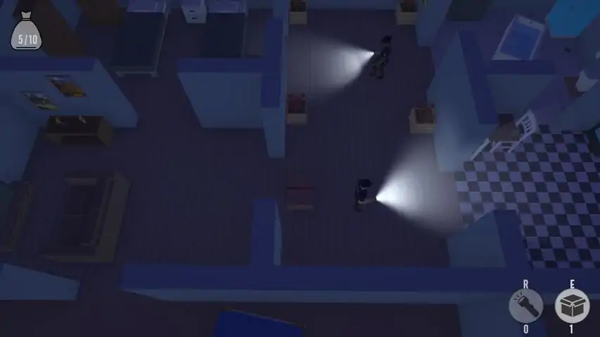 Not A Thief Simulator is a top-down 3d game where you are a robber stealing in all houses blackout while trying to avoid getting caught by the police. But you're not a normal thief, you got powers to instantly hide in a box and deactivate the police flashlight. Be quick to grab everything, but beware of overloading your bag with