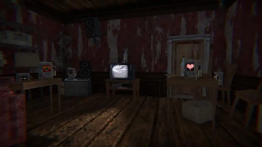 You find yourself locked in a small room illuminated only by the hazy glow of a single TV. Around you are a collection of