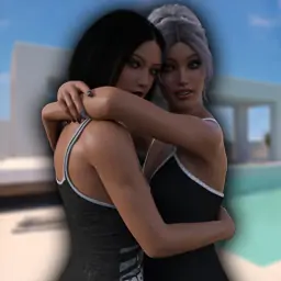 Solve the puzzles to reveal and collect pictures of futanari characters having fun, sex and relaxing by a luxurious pool on the seaside, in images hidden behind pairs of cards which you have to