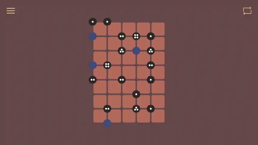 meleng is a logic puzzle game played on a grid of square cells. This grid also contains circles with dots which indicates how many lines must crosses at that point. You must complete the grid by filling in every cell with lines and linking them with or away from each