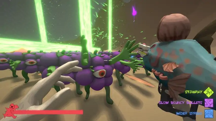 FISHGUN is a chaotic fish-person shooter. The evil fruit have taken over and drained the ocean. Use your fish gun to defeat the fruit and confront their