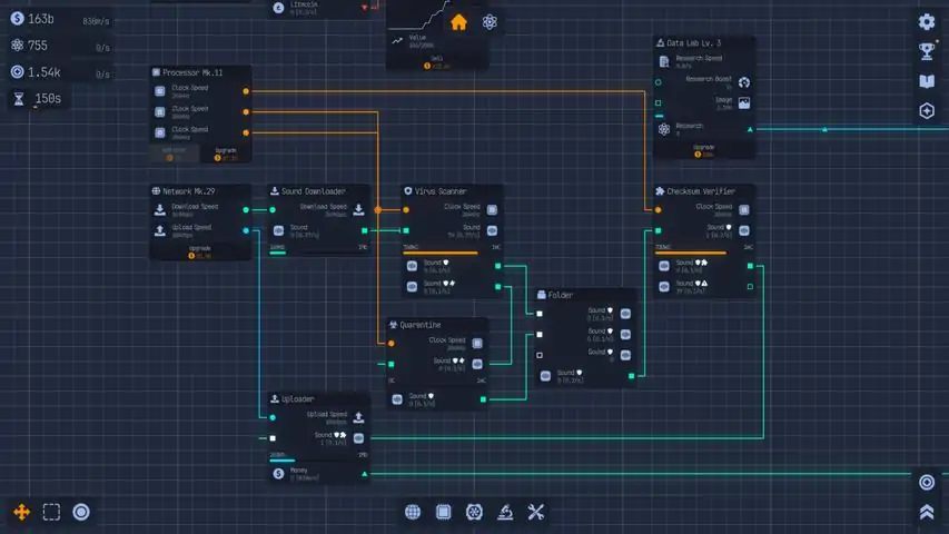 Welcome to the Labs! In Upload Labs you are tasked to save the universe from the inevitable heat death. Use your ingenuity and power to build optimized systems using a node-based system. These nodes are window-like interfaces representing components and processes within your computer. You will connect nodes from output to input to control resource flow and data pipelinesResearch: Scan files to unlock powerful new technologies via the research tree. There you will find game-changing nodes, innovative systems, and scientific milestones, all critical for achieving your ultimate