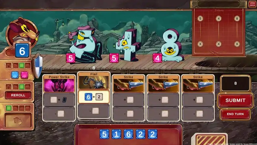 Talystro is a roguelite-deckbuilder where you combine dice and cards to defeat your enemies. An army of numbers that comes to life stands between our unlikely hero, the Math Mouse, and the wicked Necrodicer, who has started the forbidden ritual of Talystro.A Number's GameInstead of chipping away at your enemy's HP, you'll instead try and match their value to instantly take them out. Your cards contain one or more unfinished calculations and you'll use your dice to complete them. OutnumberedThe Necrodicer has begun the ritual of Talystro, and are pouring twisted and corrupted beings into this world in the form of numbers. Each combat encounter you'll face multiple of these foul beasts, and it's up to you to determine how to best deal with them and in what order!Weapons of ChoiceCollect, upgrade and enchant your cards. As your enemies grow in value (and numbers!), finding cards to give you the flexibility to deal with them will be key. The calculations on your cards often refer to variables, like the number of dice for instance; Since these variables change during the round, the order of operations will be important -- countless possibilities and room for optimization! The cards can also contain modifiers, resources and spell