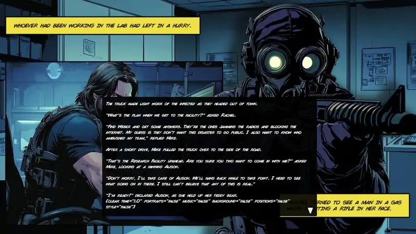 Z Virus: Outbreak is an interactive graphic novel. At various points in the story, you will be asked to make a choice, these choices will take you down different paths in the story. Your objective is to escape the city of Redrock during a zombie outbreak. The game features 3 possible story endings.