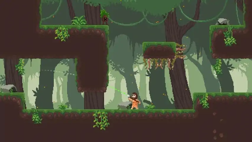 Aim and throw your spear to overcome obstacles and defeat enemies. Use it to create platforms that give you a boost to reach new areas. Master the winds with the gliding spear, riding air streams to explore even higher heights. Explore a vast world filled with mysterious encounters and hidden secrets. Use the environment to your advantage by swinging on liana ropes. Pogo off spikes, throw enemies into them, and discover new areas as you overcome every challenge in your path to save the Tribe. Venture through a handcrafted 2D pixel art world, uncovering secrets and gaining new abilities. Face off against corrupted creatures and powerful bosses, each requiring unique skills and strategies to defeat. Use your tribe's ancient wisdom to find them and restore peace to the island.