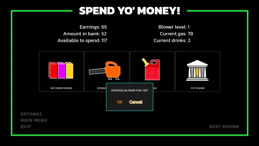 There's no better way to spend a beautiful autumn day than to crank up the old leaf blower and give a lawn the care it deserves. With Leaf Blower Something, you can experience the sheer joy of blasting leaves across a yard in any season, at any time of day, and in any weather. Play as seasoned pro Juan or weekend warrior Ron. Blow the leaves into the designated area before time runs out. Get paid based on how many leaves you get into the pile. Use your earnings to upgrade your blower and keep it fed. Do poorly and you'll find yourself out of a