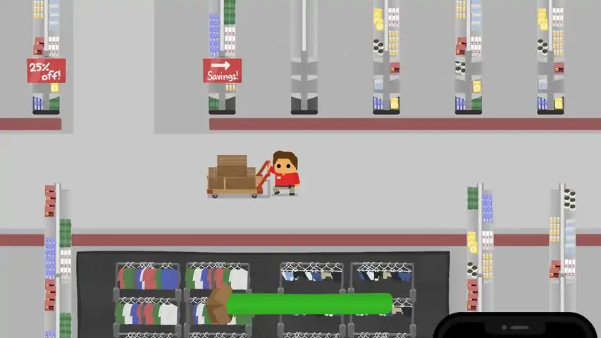 Grab your uniform and put your customer service face on! Get ready to tackle the fast-paced environment of your shifts in Retale, where managing your time and resources is key to avoid getting fir- sorry, to avoid "leaving to pursue other opportunities".Your job is simple: stock the shelves and keep the customers happy. Simple doesn't always mean easy, though; be prepared to face an array of obstacles as you work your way ever closer to being able to finally clock out for the day. Armed with your trusty airhorn, step up to the challenge and practice your work down to a science. Navigate the sales floor, find secrets, and aim to become Employee of the Month!Acquaint yourself with the mostly-tolerable store regulars, and make sure they experience the customer satisfaction guarantee. Quell their complaints quickly before they go full Karen on you, or just throw a well-aimed box at them. It's only assault if someone catches you, right? You'll have the "dedicated support" (reluctant cooperation) of your "loyal team" (assigned shift members) to help you, but don't let anyone sleep on the job!If you're feeling confident, head on down to Tech and you'll find someone who may be willing to make you some useful items. Customize your build with special abilities to enhance your performance, from super-speed shoes to a high-tech hypnotizer. Combine up to three items together to find new strategies and make each shift