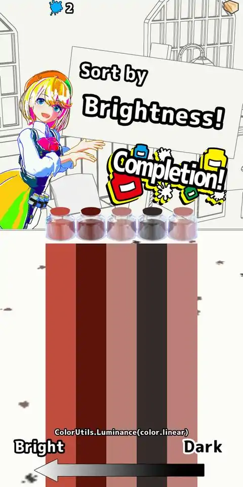 IROMAZE 墨水店是一家墨水店,在这里,神秘的墨水仙子被装瓶并运往各地。 墨仙 "墨子 "有一个习惯,当它们显示出与自己相同的颜色时,就会高兴地进入瓶中。 值得注意的是,可能会有几只墨仙同时出现,当它们出现时,您必须显示出所有墨仙的混合色。 您必须在墨水瓶跑掉之前迅速显示出正确的颜色! 为了将瓶子送到客户手中,必须按照规定的顺序将瓶子分类。 如果您能正确地将瓶子按照明亮的顺序排列,就有可能获得奖励! 按照正确的顺序慢慢地、仔细地分类! 现在是考验您色彩感觉的时候了。 将墨水瓶装满墨水,排好队,然后与商店经理可可一起将它们运走,以获得高分! 作为额外模式,游戏还加入了可收集的 "颜色 Gacha"。 通过收集奖励星星和转动 Gacha 收集颜色,您可以了解颜色的名称,并自由地为可可的服装着色。 只有颜色(←重要!)。 在 IROMAZE 墨水店 享受各种颜色!