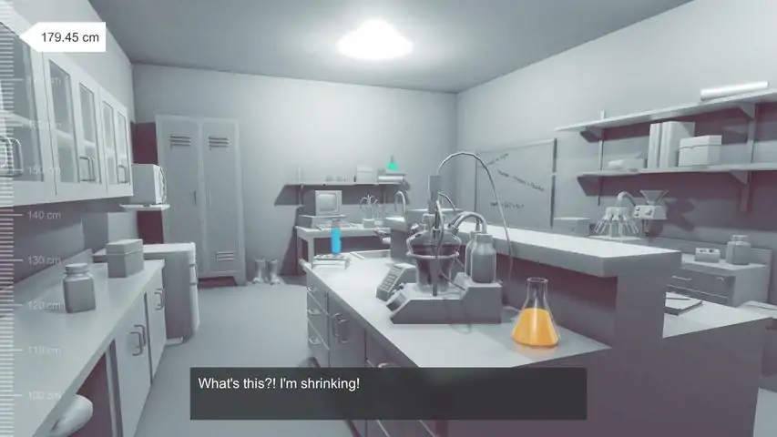 IntroductionYou play a shrinking scientist in a race against time: Can you find all necessary formulas and ingredients to produce the antidote and stop shrinking, before you are too small to operate the life-saving lab equipment?Processing ingredients takes valuable time – time you should use to search for missing components or rearrange the lab for when you may be too small to reach the machines you need!GameplaySearch for the formulas and ingredients you need to produce the three key components of the antidote!Each formula corresponds to one of the machines in the lab. They produce new ingredients, which may be used in other formulas or are one of the three key ingredients you are looking