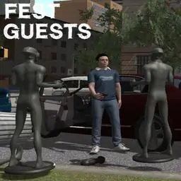 Constant action in large city areaFest Guests is an open world survival game about defending yourself against an alien invasion - right at the beginning they ruin your party by abducting all other people!First you fight with simple weapons until you get alien technology. The battlefield is the large interactive town area - you can even fight in a robot driven city