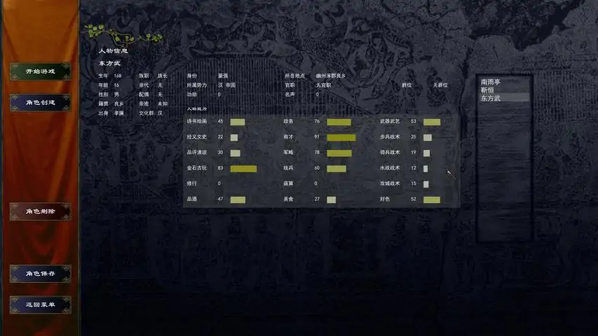 特别感谢顶着UI跳出BUG帮我找原因的玩家们。最终找到了UI导致跳出的原因,是我手搓滚动条的部分代码数值没有完全清零。这些都是我过去手写代码的遗留问题。因为这个问题让很多玩家备受困扰,实在抱歉。确实是一个正经程序员可能不会产生的错误。请喜欢本游戏的玩家放心支持。跳出问题已经修复当前版本游戏在昨天上架后,玩家们反应了很多问题。这都是因为我个人开发经验不足导致的,特此致歉,因为担心发公告看不到,所以写在商店页面首页。已经完成原因:由于数据未实现前后分离,导致后台AI事件刷新时,影响了玩家UI界面数据,导致数据长度不对,产生跳出。实在不好意思。2、很多事件的推送消息不够,或者帮助信息不够,导致玩家对于事件发生后,缺少足够的信息去判断。补充了部分消息。后续会先完成剧情和任务编辑器,然后追加更多配套推送消息,优化玩家的游戏体验。3、在攻城略地阶段,AI兵力配置数量不合理,导致玩家攻城困难。已经完成a、减少了黄巾军的兵力刷新b、减少了历史割据势力的兵力刷新c、提高了基础军队上限d、大幅降低了招募武将的名声和官位需求,同时降低了招募武将的难度评价4、缺少自动存档。已经完成已经补充自动存档,当前每月自动储存三次在解决UI跳出,确保自动存档,以及降低AI相关兵力数值后,游戏的稳定性有较大提高,当前的建议非常喜欢这类游戏的玩家购买,也请入群向我反馈意见想法如果是比较喜欢这类游戏,但是对游戏当前的状况还不太满意的玩家,建议添加心愿单和关注,同时也请入群向我提出意见想法近期目标:1、增加控制台功能。2、替换UI模块,彻底解决UI稳定性问题。有任何疑问或者意见都可以向我反馈。欢迎加入到:Sinoepoch水友群 775852975感谢大家的宽容与支持。让我们一起把这个游戏完善好。——————————————————这是一款单人制作的独立游戏。游戏内容介绍当前游戏已完成部分:1、从184年开局,选择一个地方豪强作为家族初始成分,开启乱世人生。2、角色扮演部分学习《太阁立志传5》,当前实装个人战,拼酒,讨伐盗贼,打猎除害4个小游戏。3、战争部分学习《欧陆风云4》,战争需要宣战和和谈。根据三国题材特性,战斗分为野战和围城战两种情况。4、商品贸易部分学习《大航海时代4》,玩家通过低买高卖商品获得资金,助推城市发展。5、当前已经实装称帝的剧情线一条,玩家通过攻城略地,获取势力威望,从而称公称王,直至称帝。6、游戏玩法有明显的三个阶段划分:包括个人自由阶段,初级势力阶段,和势力派系斗争阶段。游戏的各项机制围绕着这三个阶段展开,如官职系统,玩家在初级势力阶段只有部分地方官官职可以分配。称帝之后才有京官和武官等官职分配。7、游戏当前主要历史事件围绕中平元年到十八路诸侯反董卓这一时期展开。8、玩家可以与地方豪门结亲,生育子女,延续家族血脉。当前游戏还有很多不足:1、游戏暂时没有角色立绘。2、游戏UI还需要进一步优化。需要修改UI模块,添加动画效果。实现包括“家族树查询”等功能在内的更复杂的UI界面。3、由于地图超大,代码优化能力有限,在大地图接缝切换处,可能存在轻微卡顿。后续游戏更新计划:当前游戏版本已经实现了历史策略游戏运行的基本框架,但类似《十字军之王》的部分机制由于旧代码结构问题,暂时未能实现。后续更新内容将围绕重制UI模块,制作控制台,更新数值系统等内容进行更新,将努力复现《十字军之王》的游戏系统。追加生产职业,追加更多小游戏,完善角色扮演生涯。根据历史故事特点,增加更多称帝剧情线,满足不同的角色扮演需求。————————————————三国主题是一个庞大的内容主题,每个玩家都有不同的期待。我理解这份期待,后续继续更新内容。——如果你觉得游戏的当前版本并没有达到你的预期,请勿购买。但顺手加个心愿单和关注,给予一份精神上的支持吧!如果你觉得这个游戏不错,请多多支持。欢迎加入到:Sinoepoch水友群 775852975————————————————游戏特色真实超大地图本作地图超大,根据真实地图绘制。历史地点参考《中国历史地图集》,玩家可到达的地点分13州,103郡,共计967城,8个关卡。海量历史人物当前版本出场人物共计1002人。其中部分非真实角色由于名气过大,例如周仓,在本作中这类角色归为“历史人物”。家族与城市建设本作以家族扮演为核心,玩家自建人物,“穿越”至东汉末年,游戏天下,当该人物死亡时候,玩家将控制该人物的后代继续游戏,直至该剧本年代结束。若玩家控制人物没有后代,则当前控制人物死亡,游戏结束。所以请玩家尽快结婚生子。当前版本剧本长度为200年。一个家族的起点是一座城。玩家通过经营城池,招兵买马,在乱世之中也可以席卷天下。势力与国家博弈所有的国家都是势力,但是不是所有的势力都是国家。本作中势力还包括诸侯、军阀、割据、豪强、部落等实力各自不同的政治实体。各势力之间可攻伐可同盟可支配,供玩家纵横捭阖。个人能力与历史进程本作中,个人能力属性有18种之多,各种能力可以根据经验值增长而产生变化。同时,有大量历史事件和魔幻历史事件等待玩家的推动和见证。但是,以上都不是强制的游戏目标,玩家可随心随意进行游戏体验。唯一需要完成的目标就是“