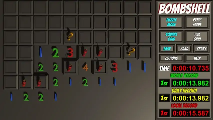 Bombshell is a modern take on the classic minesweeper puzzle game. It features both the classic "Puzzle Mode" and a new "Panic Mode" where opening empty squares starts a countdown fuse that will detonate the bombs when it runs out unless you mark all the exposed bombs correctly. Bombshell also allows you to choose between the classic game board with a square grid or the new hex grid style board which can be easier for new players. You may also choose from three difficulty levels in all the modes and styles for a total of twelve different game types to choose from. One of the great improvements in Bombshell is the innovative touch/mouse interface. You can still touch quickly or click to open a grid location or long press or right click to mark it as a bomb or with a question mark, but clicking on the numbers can often be much faster and easier. When you touch or click a number next to the proper number of marked bombs it will open the surrounding spaces. More importantly, touching or clicking a number that matches the number of unmarked grid locations surrounding it will mark those spaces as bombs for you all at once. Don't worry, the interface is smart and will prevent you from making mistakes and let's you know when you are attempting to do something that won't work. All of this leads to an improved user experience and much faster game play. Speaking of faster game play, each of the twelve modes supports three different types of leader boards: World Records, Daily Records, and Local Records. World Records are kept on our server and track the three best times ever for that particular combination of play mode, grid type, and difficulty. Daily Records are the top three times each day from around the world. Local Records are the three best times ever on your individual device. And the records are shared among all device types, so, you will be competing with the best minesweepers from around the world on PC's and mobile devices of all kinds. And your score is recorded anonymously, so there is no need to register with any kind of player service to participate. Reading the global records and writing you new best time when you beat one is the only information we pass to and from our server. Your privacy is assured and the leader boards are anonymous and family-friendly! (Daily Records are reset each day at approximately midnight Eastern Standard Time.) Another great feature in Bombshell is our animated 3D board. The numbers that still need bombs identified next to them will slowly bounce up and down. Numbers with the correct number of bombs marked will stop moving. If you mark too many bombs, the numbers with the incorrect number of bombs marked next to them will jiggle wildly to show you your error before you make a fatal mistake! And if you accidentally click a bomb, when it explodes it will trigger the surrounding bombs in an outward cascade. Each of these animated features can be individually turned on or off from the options panel. The options panel also lets you choose which types of sounds you would like to hear so you can customize your experience to be perfect for you. Bombshell is great on desktops, laptops, and tablets! It supports both mouse and touch screen play. Devices with smaller screens will enjoy the ability to zoom and pan on the levels with larger grids. Our goal was to create the best minesweeper game ever, and we are pretty proud of how Bombshell turned out. Let us know what you think in the comments or forums, and feel free to contact our support team if you encounter any difficulties. We want you to love our games!