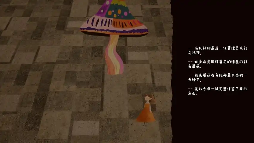 《美梦乌托邦》是一款孤独、安静、缓慢、自我的步行模拟游戏。你没有任何必须克服的困难,也没有任何必须完成的目标。你可以抛开一切冗余的思想,依照自己的意愿去感受一个曾经繁荣的乌托邦死后怎样。游戏文本包含许多荒诞的、现代派的痕迹,以及许多“非常规游戏”的东西。总体而言,它可能与我们熟悉的剧情类游戏不太一样。