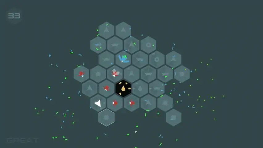 In Morphblade you move around a grid slicing, smashing and bursting waves of nasty red bugs. Each tile you move to transforms you into a different weapon: on a Blades hex you can slice enemies on either side of you, on an Arrow you can launch yourself through two enemies in a row. Between waves, you choose how to build out the grid, and upgrade your most used hexes with new