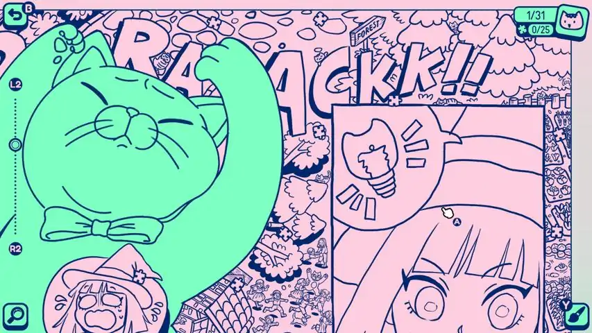 MORE UPCOMING GAMES! 关于游戏 4页漫画和拼图 204只猫 照片模式 亮度设置 选择你喜欢的颜色 4首音乐 免费提示 保存系统 缩放 可爱的猫咪声音 支持游戏手柄嗨,欢迎来到我们的实验性隐藏猫项目。Cats Around Us 是一个系列,将有益的无声漫画介绍为新的游戏媒介。"Giant Cat" 由 Kathrinna Rakhmavika 所创作,跨越四页无声漫画面板,讲述了一只巨大的猫在村庄中制造混乱的温馨故事。一个年轻的女巫必须介入解决这一情况。在每一页中,我们都隐藏了许多猫供您寻找,同时享受故事。此外,我们还增加了一个照片模式,供玩家捕捉漫画中有趣的瞬间,让他们可以对其进行上色并与世界分享他们的创作。