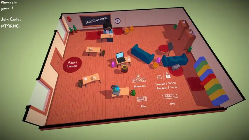 About the Game Musical Chairs is an online multiplayer based on the world-famous party game. Cue the music, start playing and make sure to catch a seat! Run around at school with up to 8-players and try to become the teachers' favourite by competing with the other