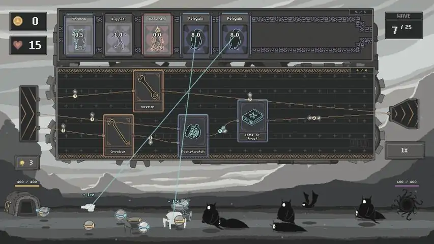 Golemworks 是一款融合了自走棋类 Roguelike 和工厂模拟玩法的游戏。你需要组建一支钢铁傀儡军团,它们会自动战斗并守护基地,对抗一波又一波逼近的暗影。道具卡 是生产基础设施。它们会为“模具”(即自动傀儡的“配方”)增加经验值和元素属性。灵质卡 会在冷却时间结束时激活,能够为傀儡或模具提供各种增益效果和额外属性。成功与否取决于你能否驾驭随机抽到的卡牌,并在优化军团编制与强化每个傀儡的力量之间取得平衡。游戏特色超过 150 张可解锁的灵质卡与道具卡挑战模式与可调节难度无尽模式