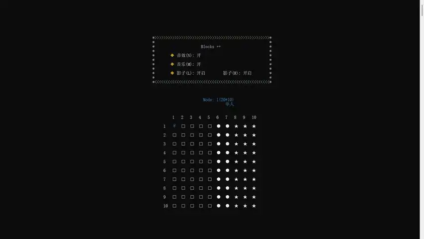 本游戏为经典的方块下落游戏, 共设计有110+种挑战模式:55种单人模式,22种双人合作模式,33种双人PK模式:率先拿下1000分的玩家获胜。 本游戏精选110首背景音乐。 在本游戏中, 您的选择权永远排第一位。操作说明: 1. 通用按键: 按键 Q 打开菜单 按键 M 开启或关闭背景音乐 按键 N 开启或关闭音效 按键 L 开启或关闭影子(左) 按键 R 开启或关闭影子(右) 按键 Enter 开始或暂停游戏 按键 空格键 开始或暂停游戏 按键 Esc键 退出游戏 按键 0 - 9 快捷键 按键 M(双击) 开始菜单界面或游戏挑战界面下重新播放背景音乐 按键 W 提升游戏速度(开始游戏之前) 按键 S 降低游戏速度(开始游戏之前) 方向键 ↑ 提升游戏速度(开始游戏之前) 按键 ↓ 降低游戏速度(开始游戏之前)2. 玩家1专用按键: 按键 W 旋转方块 按键 A 左移方块 按键 D 右移方块 按键 S 加速下落方块 3. 玩家2专用按键: 方向键 ↑ 旋转方块 方向键 ← 左移方块 方向键 → 右移方块 方向键 ↓ 加速下落方块温馨提示:【 Windows 11系统的最新版本,如24H2版本的游戏界面显示有问题,属于设置问题。解决方案:启动游戏,游戏界面顶部的页签上可以使用鼠标左键或右键打开设置 - 启动 - 默认终端应用程序 - Windows控制台主机。保存设置。关闭游戏界面所有页签再重启游戏即可。】【 Windows 11系统可以调整、优化显示效果:点击任务栏的开始 - 设置 - 系统 - 屏幕 - 缩放和布局 - 缩放 - 125%。】【 首次启动游戏时如果弹出提示框提示缺少游戏启动文件,是由于杀毒软件(如360安全卫士)误删引起的, 可以先关闭杀毒软件,然后卸载游戏并重新安装游戏,然后启动杀毒软件,最后启动游戏并根据杀毒软件的误删提示框恢复误删文件Blocks2.exe并添加其为信任软件,即可永久解决报错问题。他日,待杀毒软件官方审核Blocks2.exe完成后,启动游戏不会再弹出提示框提示缺少游戏启动文件。 首次启动游戏后如果没有进入界面全屏模式,是由于杀毒软件误报引起的。可以关闭游戏后重新启动游戏即可。】