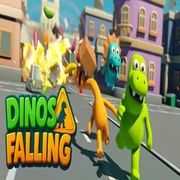 Dinos Falling is a cooperative 3D platformer for 1–3 players (local or online). Take control of clumsy dinosaurs trying to escape a modern city packed with traps, surprises, and hilarious