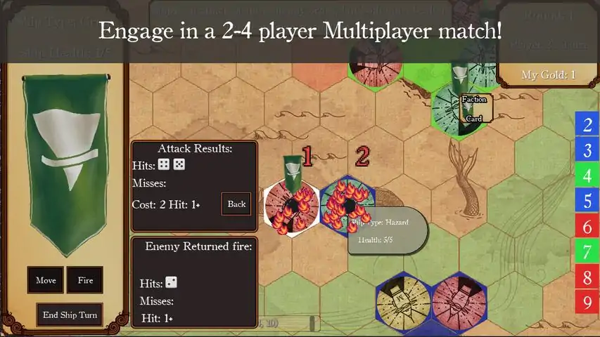 Players begin the game as one of six factions with control of three islands, a fleet of ships and a handful of gold.A player obtains victory over the other players by controlling 6 islands or being the last ship sailing. There are many routes to that victory but the journey will without a doubt involve sailing your ships, firing cannons, seizing islands, and using faction