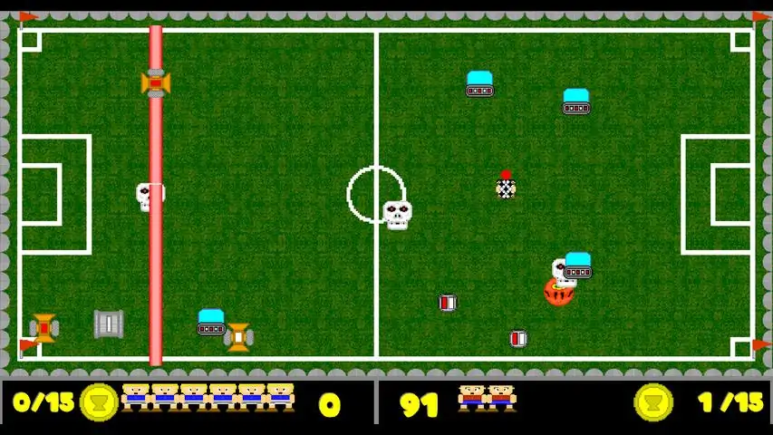 The great event of world football is being celebrated. What no one expected was that the world would suffer the alien invasion and the machine revolution at that time. Only the most skilled footballers will be able to stop this. Destroy any alien bug that crosses your path with your ball. A game that pays homage to games from the early 80s. Collect as many medallions as you can in this survival game! * One or two players. * Retro pixelart style. * Varied aliens with diverse behaviors. * Simple but difficult and fun gameplay. * Compatible with keyboard and XBOX controller.