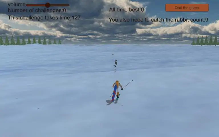 外星人为了征服地球,将在北极释放带有瘟疫的兔子,作为北极守护者,你需要在最短的时间抓住兔子,保护北极。 1、游戏的最终目的是在最短的时间内抓住10只兔子。 2、第一只兔子开始跑的时候计时开始,最后一只兔子被捉住后计时结束。 3、兔子被抓住或者跑进深林,外星人会在原地点再释放一只兔子,计时不会停止。 4、你可以不停的按空格键发出巧克力豆打击兔子,兔子碰到巧克力豆会死亡,你碰到兔子兔子就会消失,这样你就成功了一次。 5、你还可以在兔子被释放后按下F键随机获得巧克力炸弹、巧克力墙和老鹰,兔子碰到巧克力炸弹后死亡,碰到巧克力墙后被减速,但是你最多只能获得10次道具。 6、抓住最后一只兔子后你可以继续挑战你的记录,你还可以将记录发到测评里,让别人来挑战你的记录。 是的,我是这个游戏的开发者,我挑战了36次,最好成绩95秒